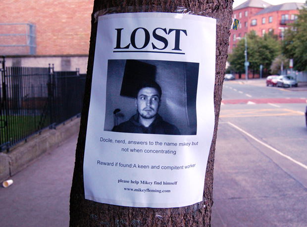 My take on this was to play with the idea that i was lost in my current profession as a graphic designer and just need help to find a more suitable path. I made a series of lost posters and posted them around Dublin directly targeting the ICAD offices.