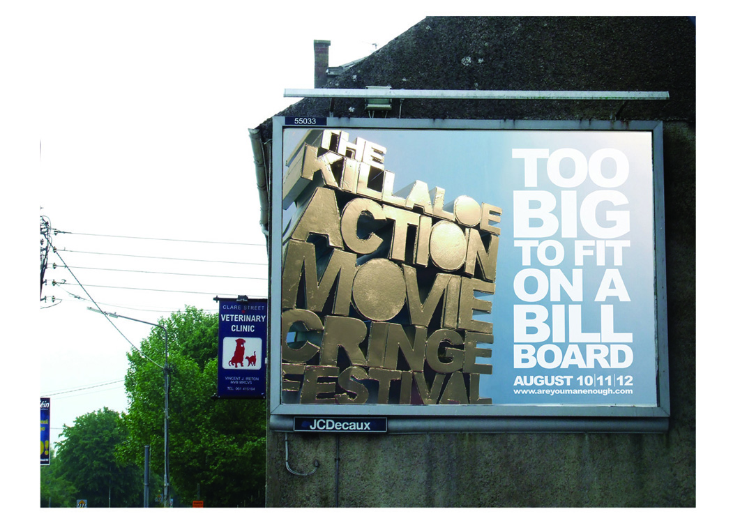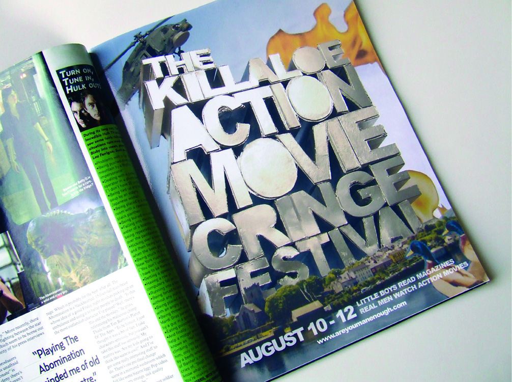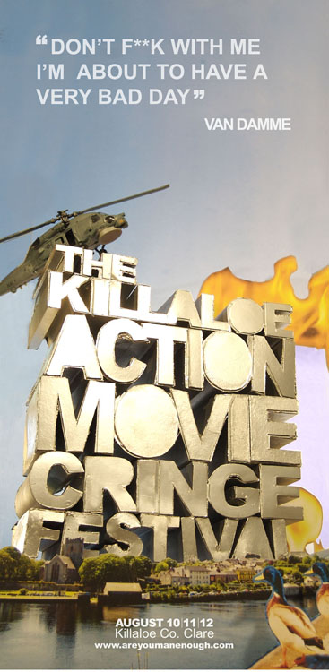 The Killaloe Action Movie Gringe Festival is excatly what the title suggests (like most action movie titles). Its an Action Movie Festival in Killaloe celebrating some of the worst action movies ever made and the stars they created. The target Audience for this festival are ‘men’ of all ages who love bad action movies. The campaign consists of ambient print and viral media.